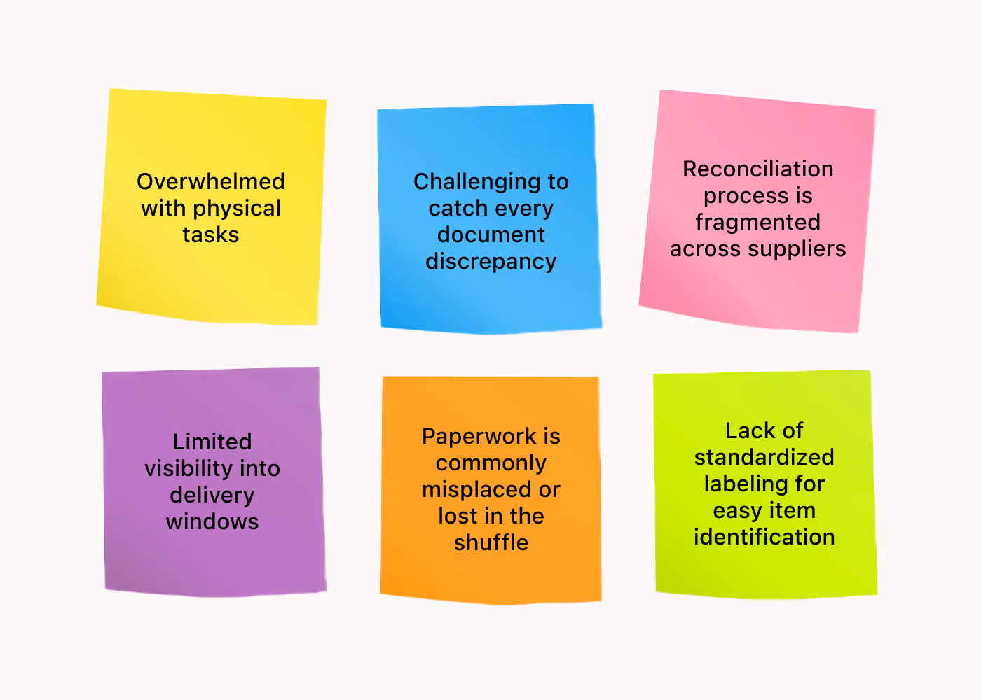 Immediately, it was evident just how tedious and broken traditional receiving was. Some, but not all, of the most notable learnings were: